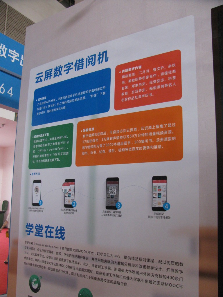 Digital is big: scholarly platforms for library subscription, lending libraries in the cloud, content for mobile Internet. Other themes include: translation of Chinese cultural material for foreign markets, ELT/CLT, and selling rights to China. We had little time to even scratch the surface for children’s publishing.