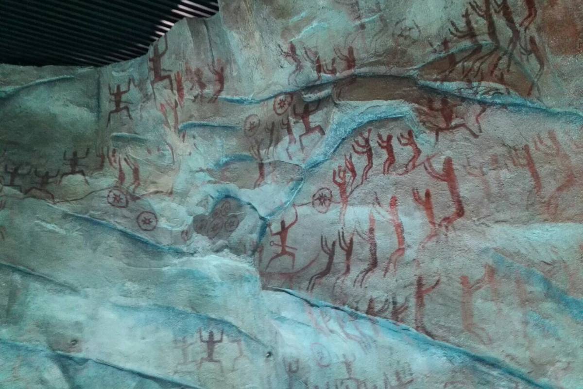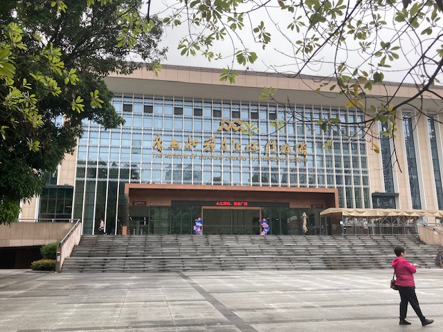 Guangxi Zhuang Minority Autonomous Region Museum 广西壮族自治区博物馆 in Nanning has an extraordinary collection of Han-period (202 BCE-220 CE) local-style bronzes, notably an exquisite bronze drum. The reproduction cave-paintings are from nearby Huashan 花山, dating to the Warring States (c. 475-221 BCE) and Han periods.